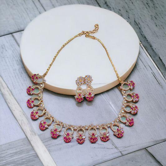 Pink Stone Necklace Set - AD01