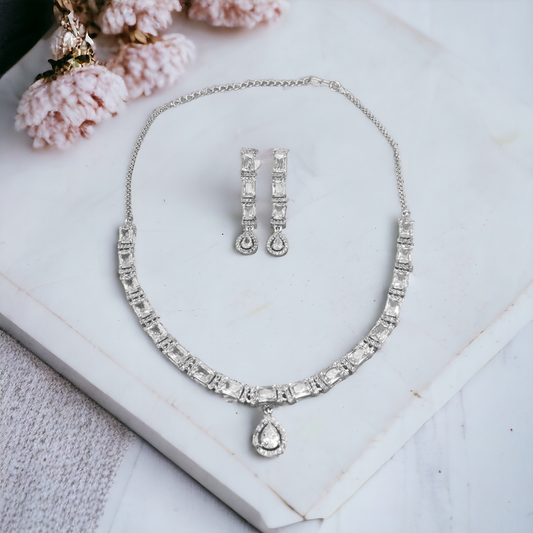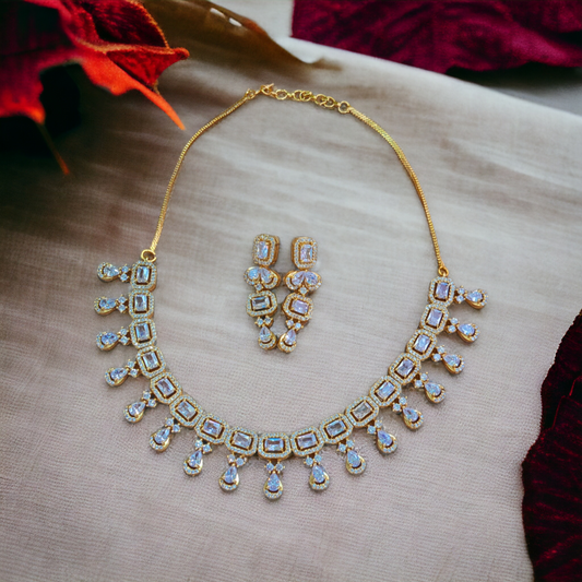 Diamond Cut White Stone Necklace Set - AD06