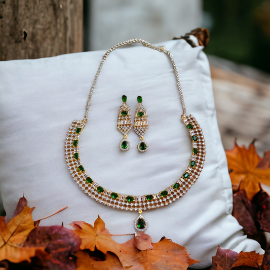 Green & White Stone Necklace Set - AD04