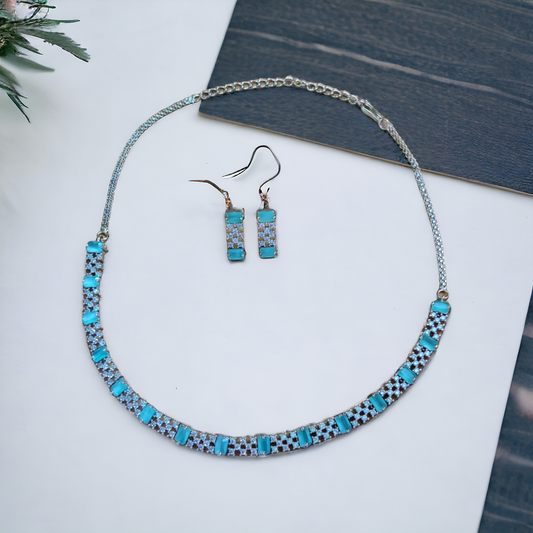 Diamond Cut Mint Color Stone Necklace Set - AD05