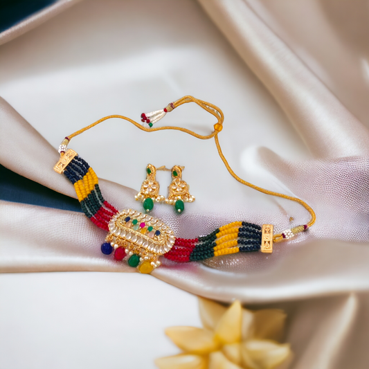 Multi Color Choker Necklace Set - AD09