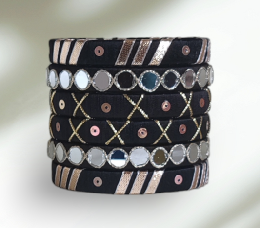 Black Beauty - Silk Thread Bangle Set - Size : 2.6