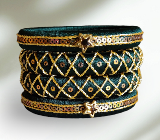 Bottle Green Silk Thread Bangles - Size: 2.6