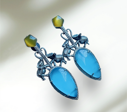 Blue Glass Beads Bracelet & Earrings Set Adorned With Cute Metal Charms
