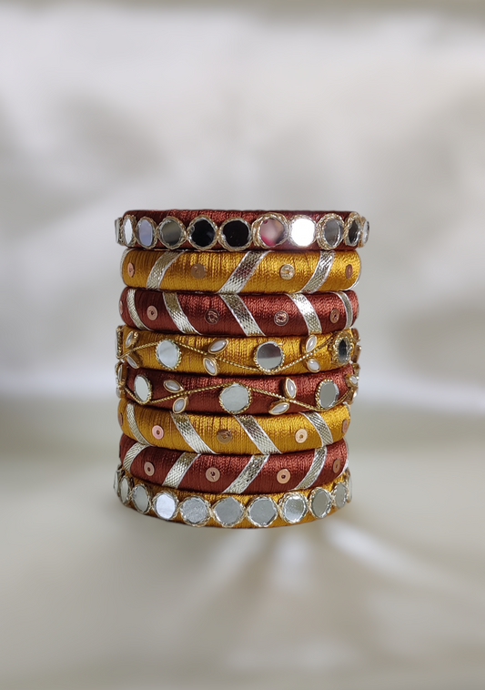 Brown & Golden - Silk Thread Gota Patti Bangle Set - Size : 2.6