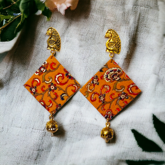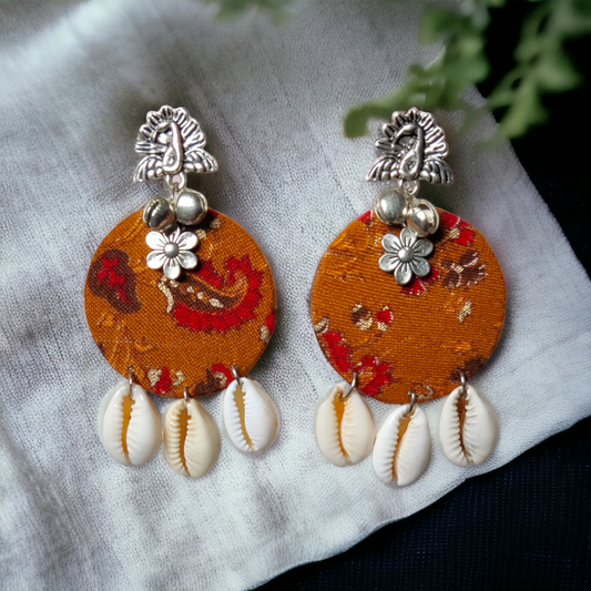 Chandbali - Green, Red & White Kundan With Hanging Golden Metal Beads - Jumbo Size