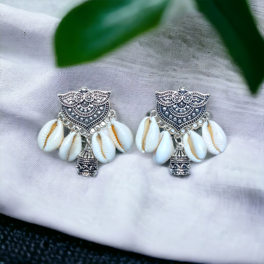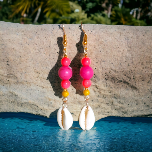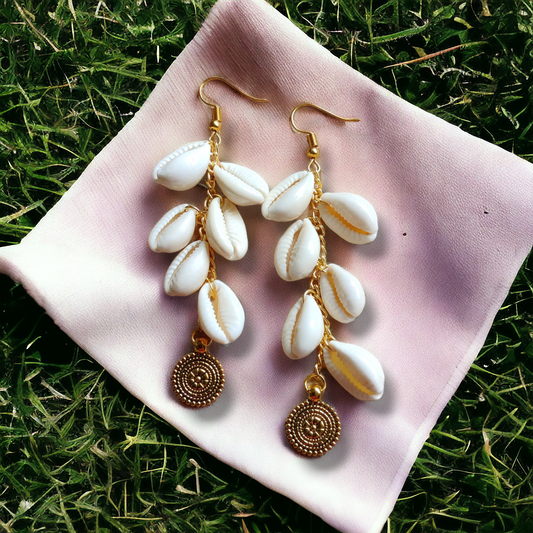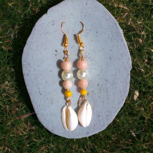 Cowrie Earrings - Evil Eye Beads & Pearls