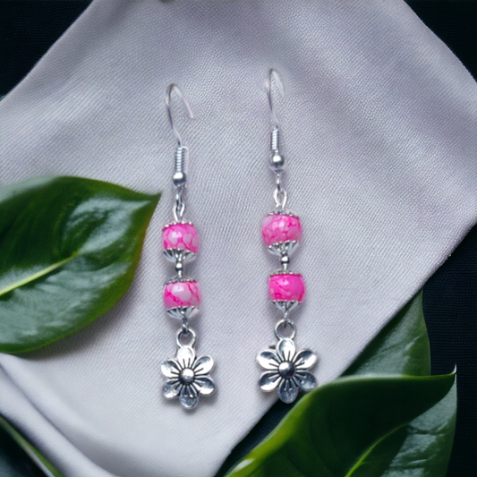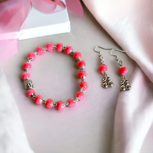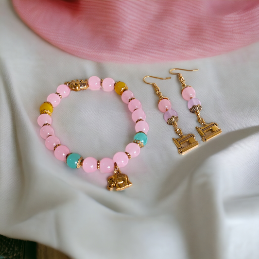 Pink Clay Beads Bracelet & Earrings Set Adorned With Cute Metal Charms