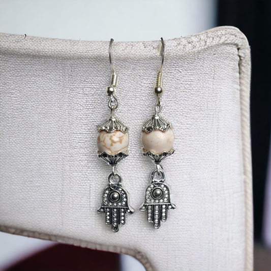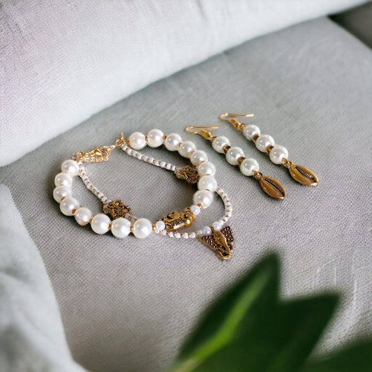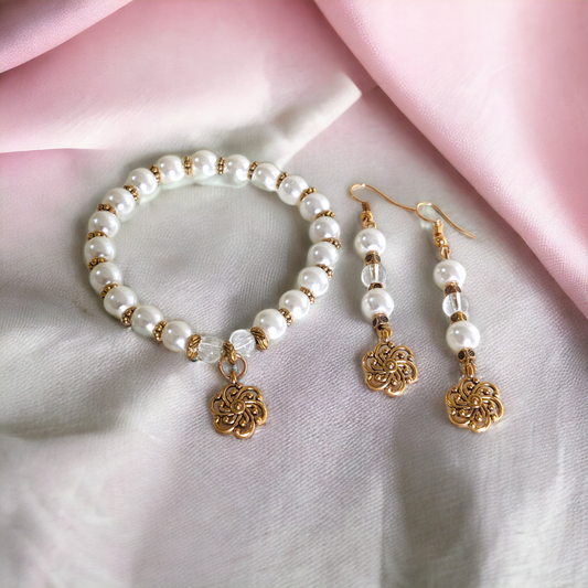 Pearls, Clay Beads Bracelet & Earrings Set With Cute Metal Charms