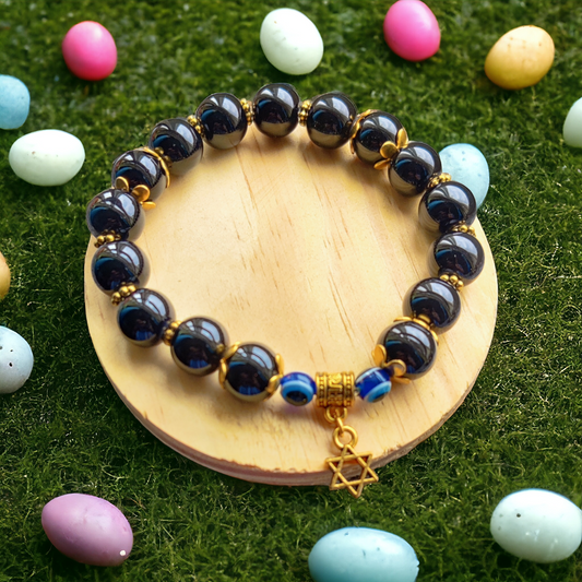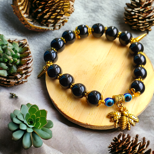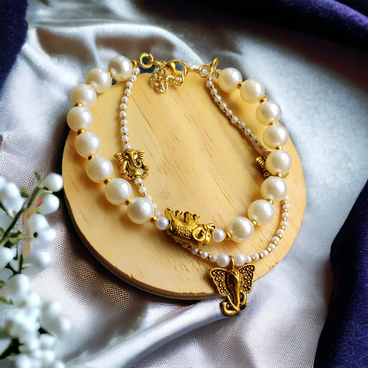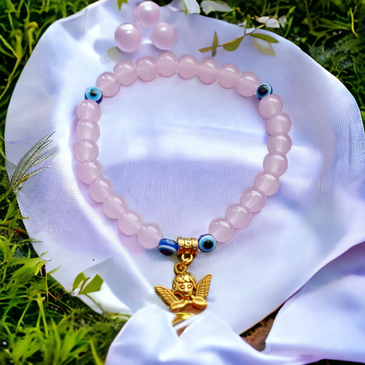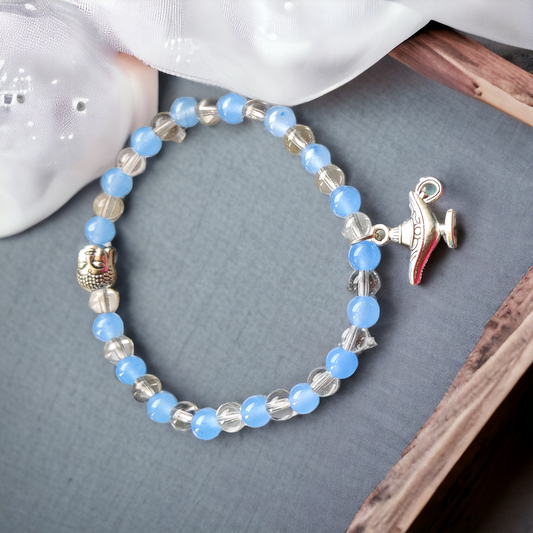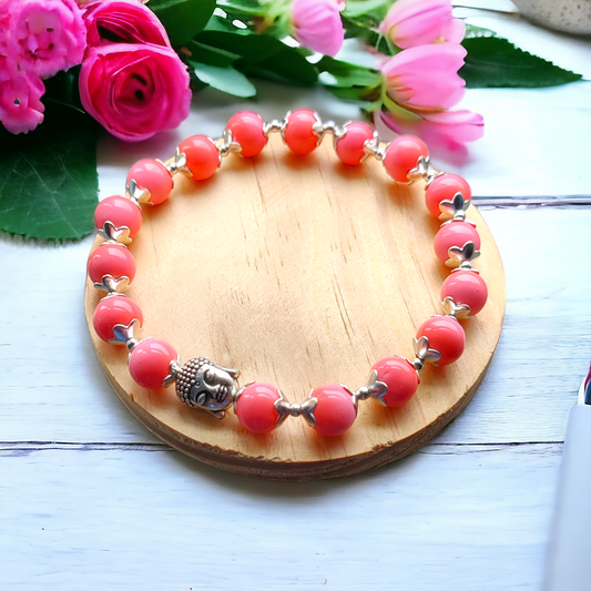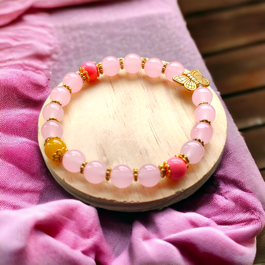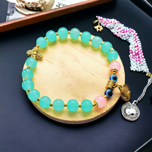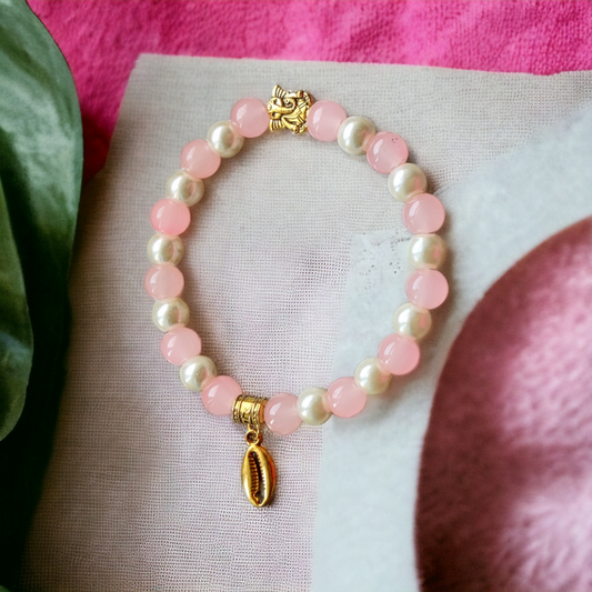 Glass Beads Bracelet With Metal Charms- Peach Color