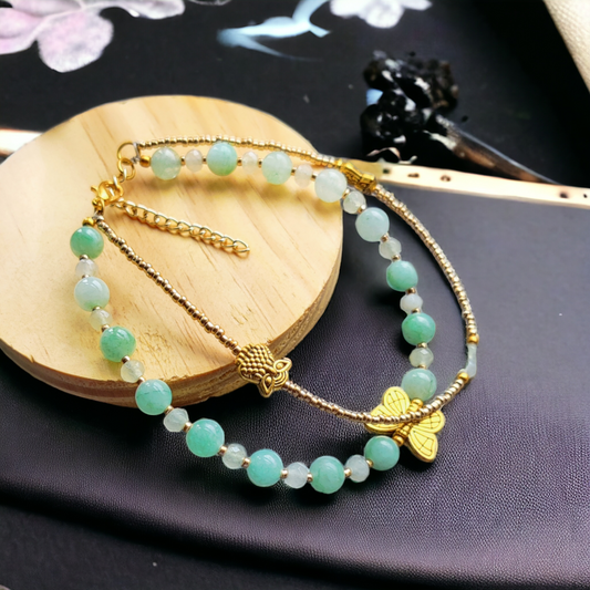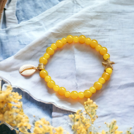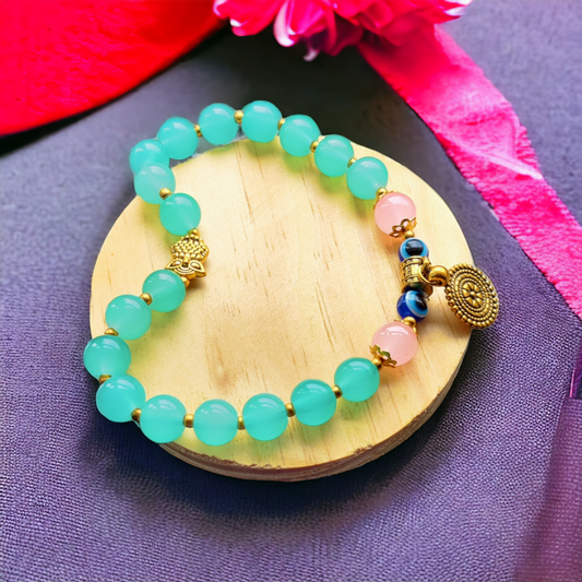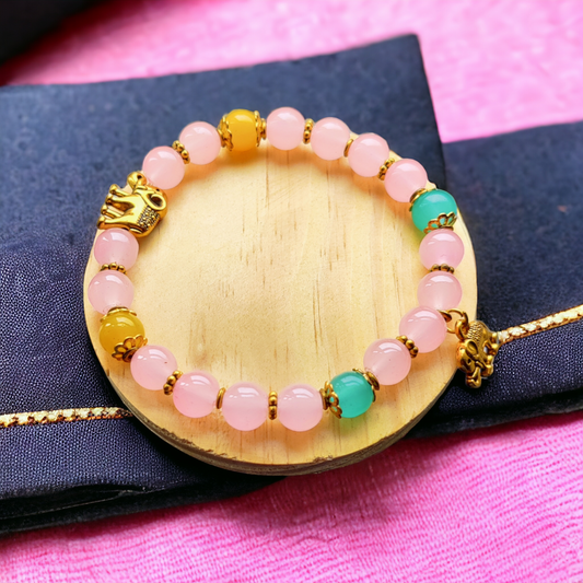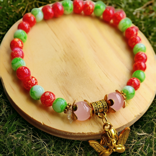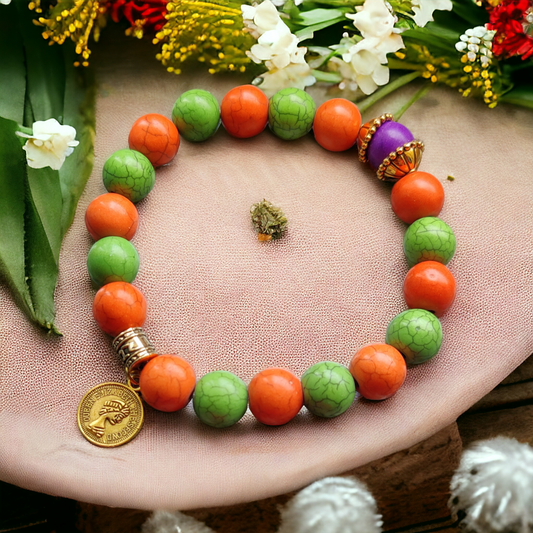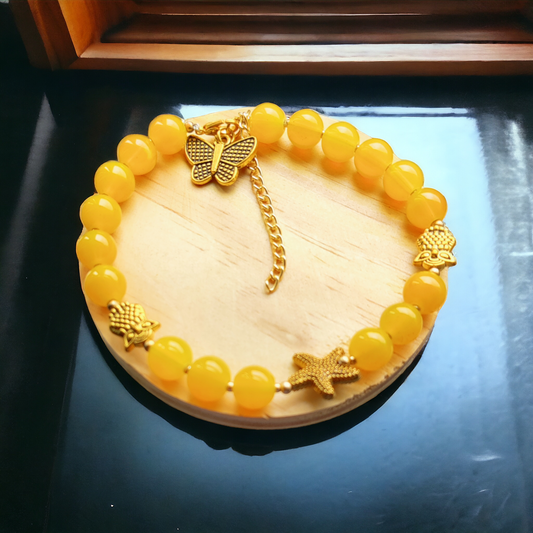 Glass Beads Bracelet - Peach, Yellow & Green Color