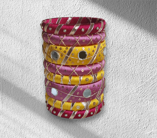 Pink and Yellow - Silk Thread Gota Patti Bangle Set - SM11 - Size : 2.8