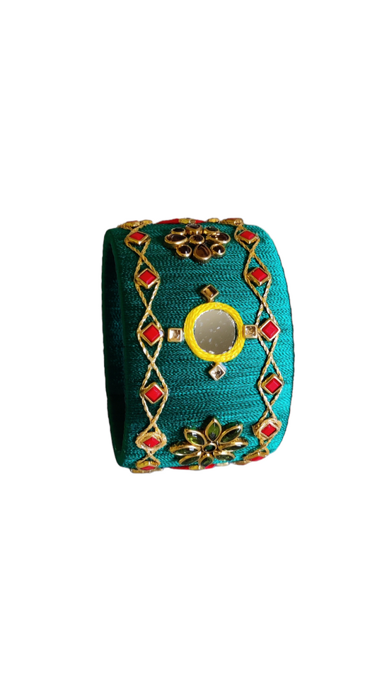 Green Silk Thread Single Kada - Size: 2.6