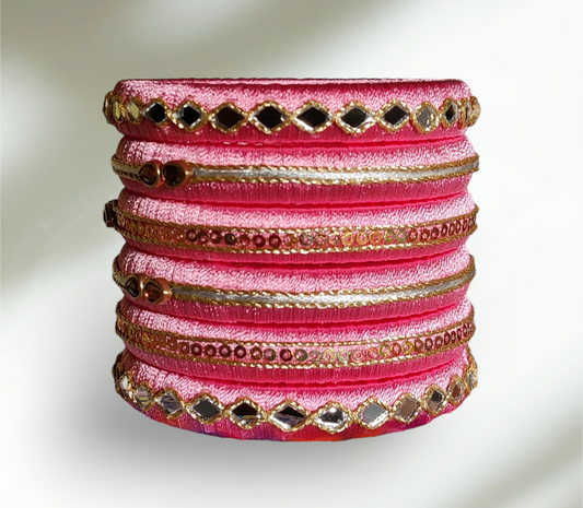 Pink Color - Silk Thread Bangle Set - SM07 - Size : 2.8