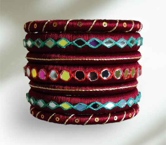 Maroon Color - Silk Thread Bangle Set - Size : 2.8