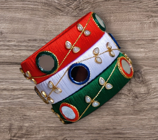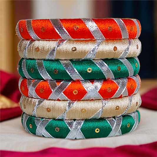 Tri Color - Silk Thread Gota Patti Bangle Set - SM09 - Size 2.8