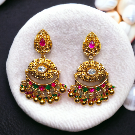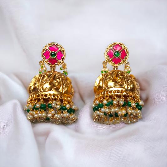Traditional Jhumka With Red & Green Kundan With Matte Finish