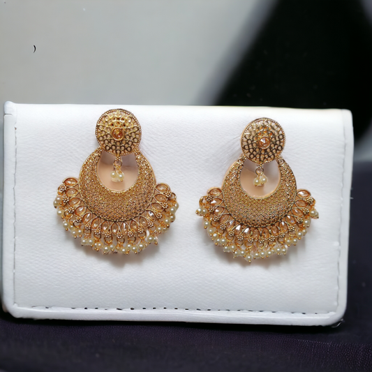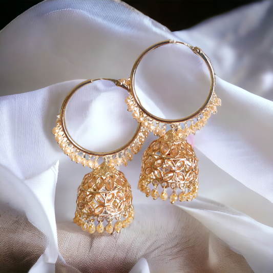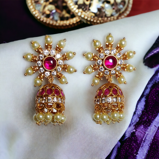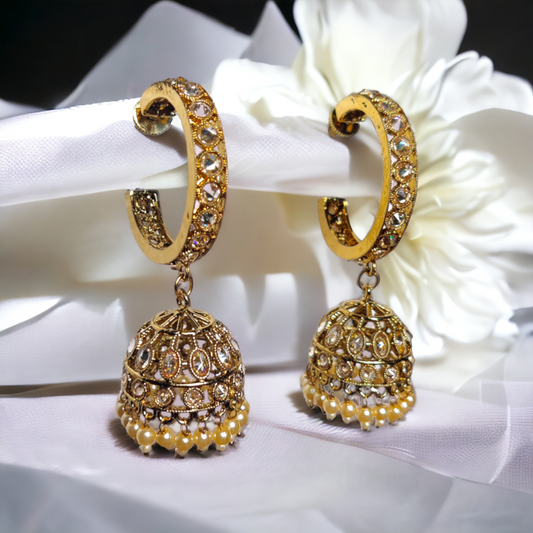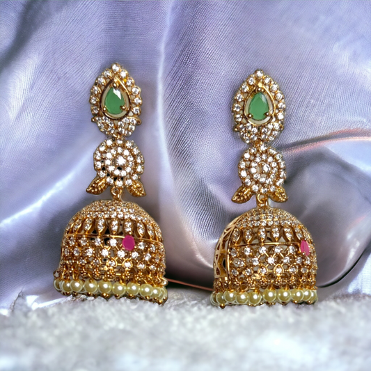 Bridal Jhumka - Pearls & American Diamond Crafted