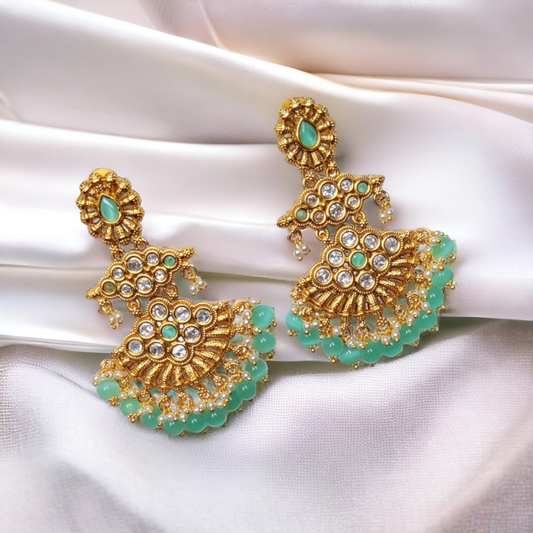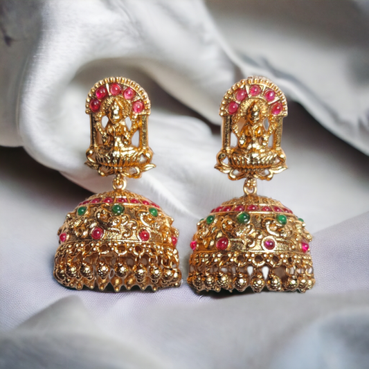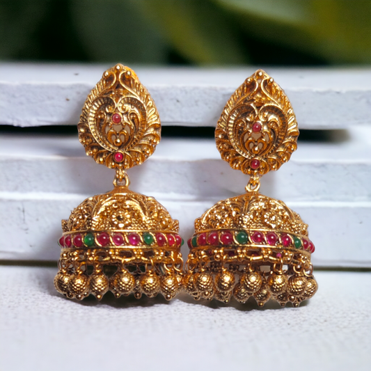 Traditional Jhumka With Red & Green Kundan With Matte Finish