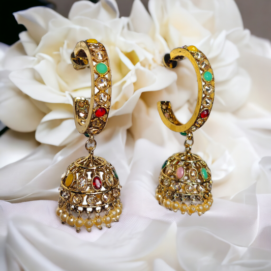Multi Color Kundan Stone - Reverse AD Jhumka