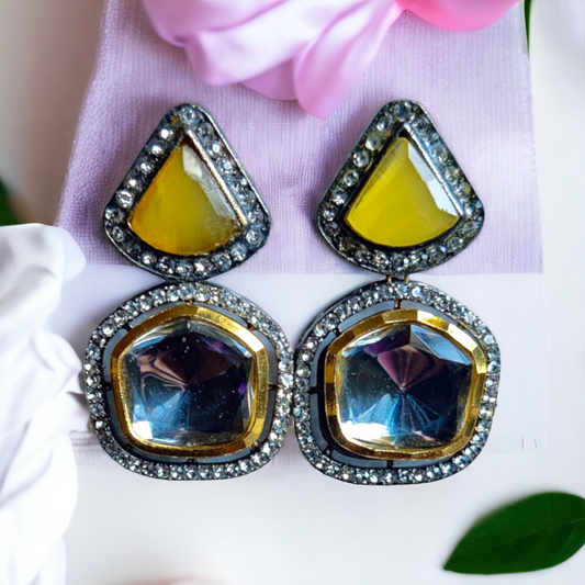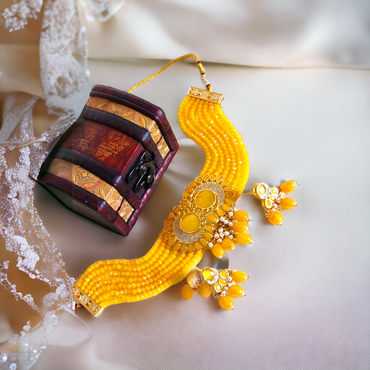 Yellow Jadau AD Choker Necklace Set With Pearls - KC10