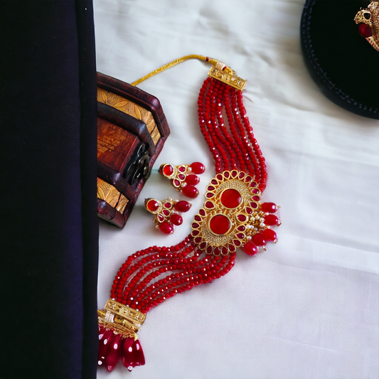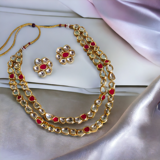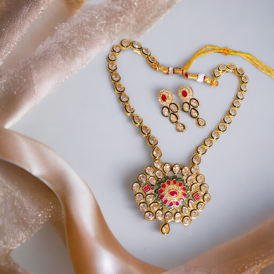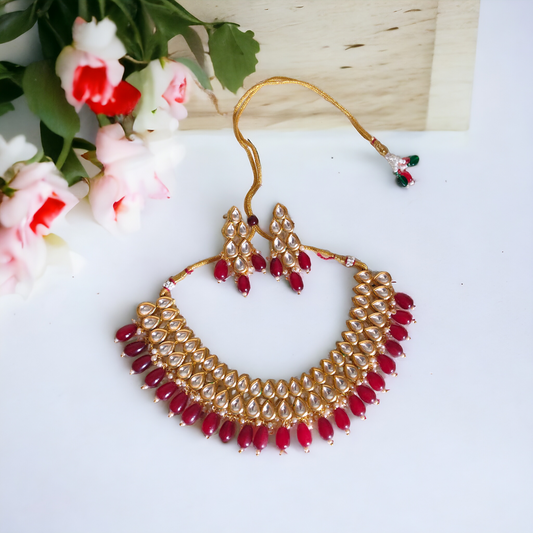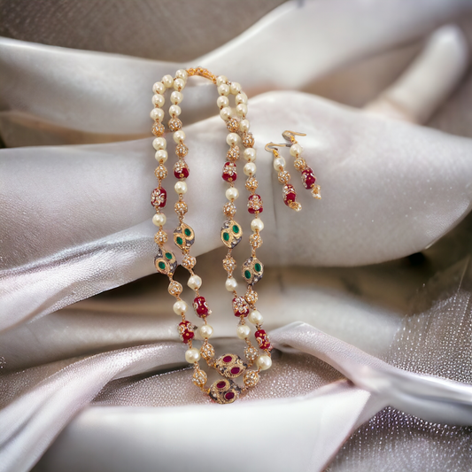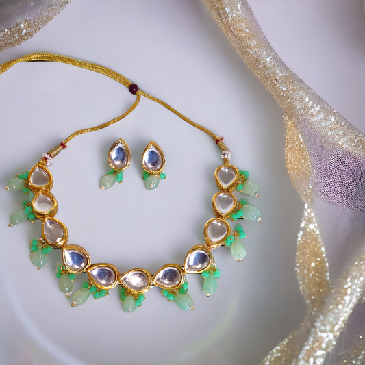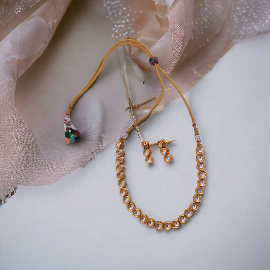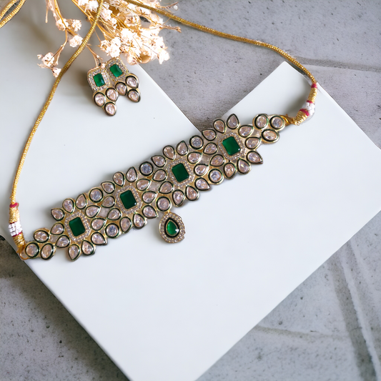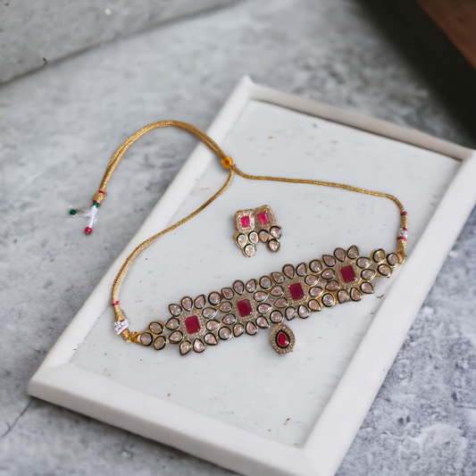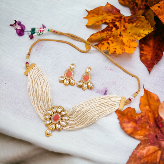 Jadau AD Choker Necklace Set With Pearls - KC09