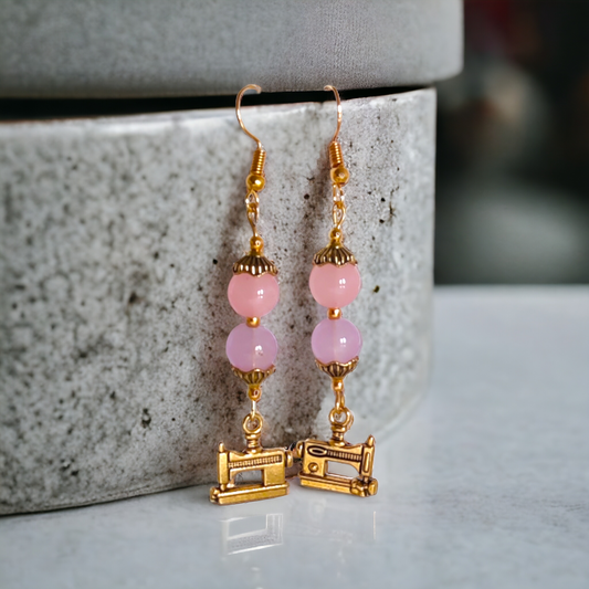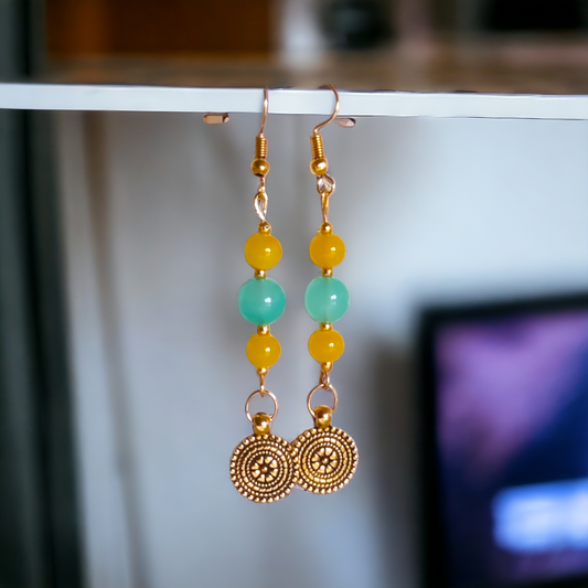 Glass Beads Bracelet With Metal Charms- Peach Color