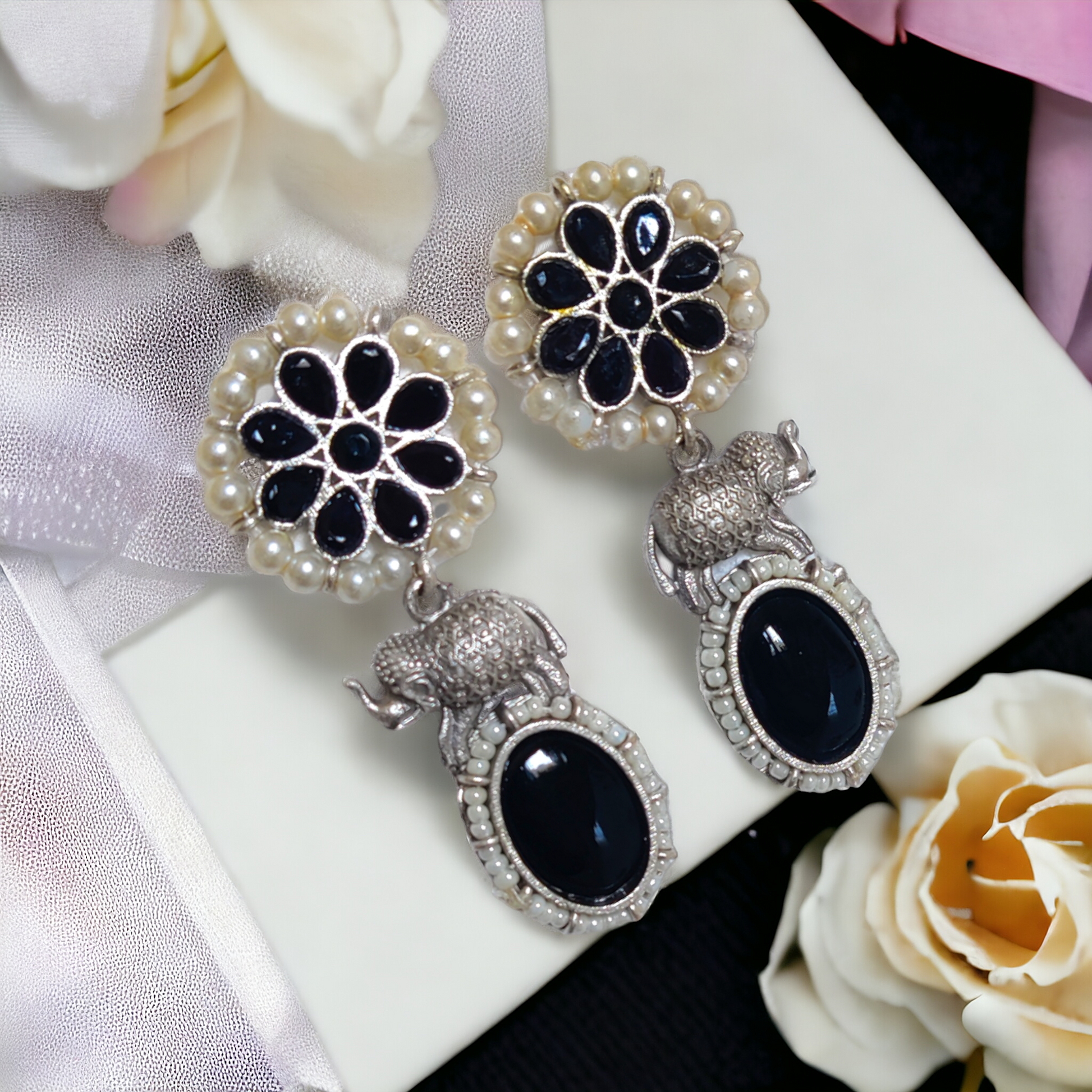 Black Kundan Earrings - XJ49