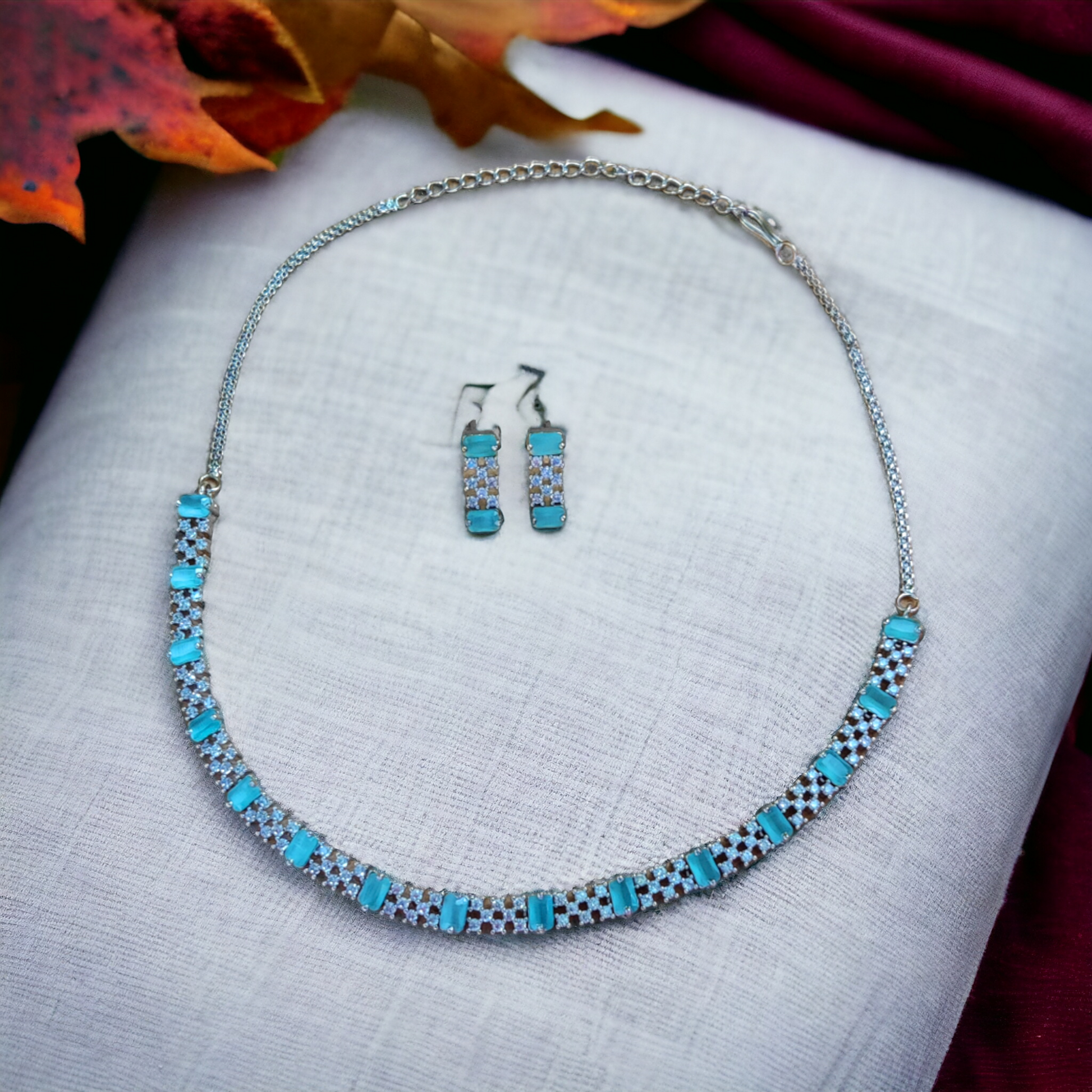 Diamond Cut Mint Color Stone Necklace Set - AD05