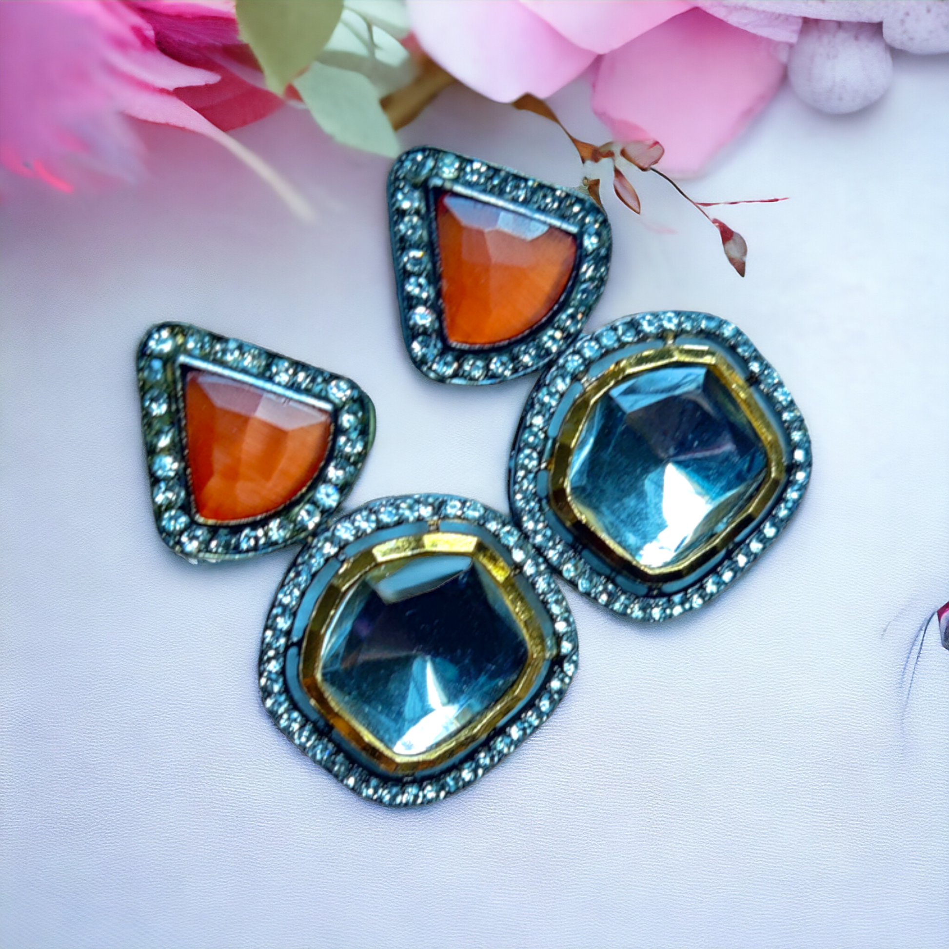 Jewellery Care Instructions:Β Avoid Contact with Water, Perfumes and Cosmetics. Store in Zip-Lock Plastic pouches or Butter Paper after use. Do not store in Jewellery boxes or Velvet boxes.