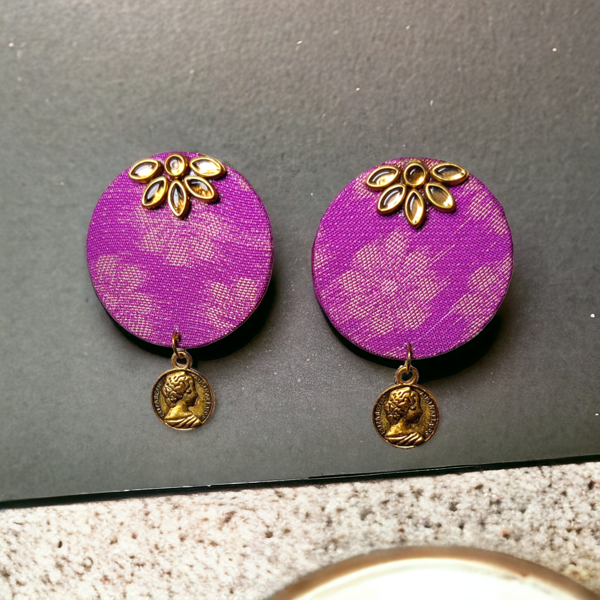Violet Fabric Earrings With Kundan