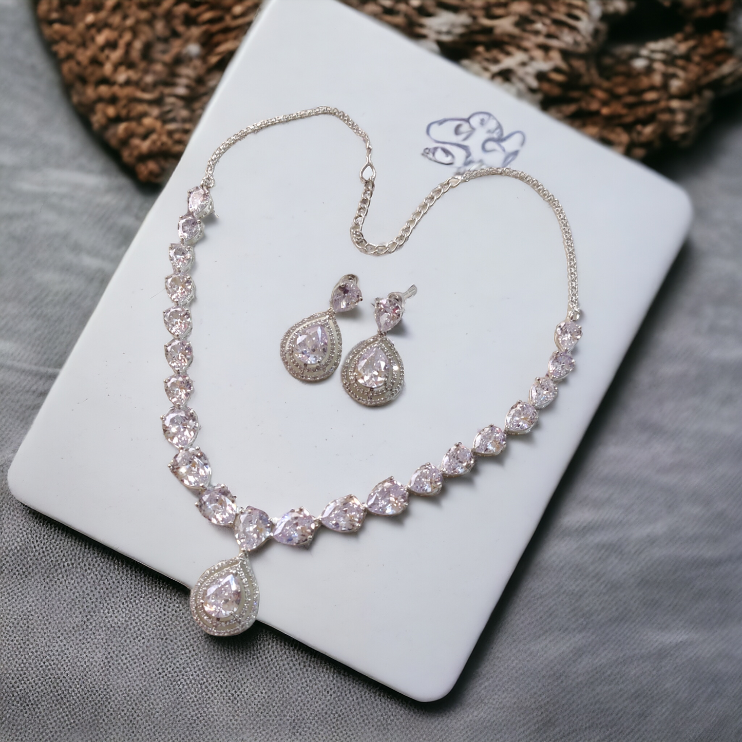 Elevate your elegance with our exquisite collection of American Diamond jewelry sets. Crafted to radiate brilliance and sophistication, each piece in our collection embodies timeless beauty and modern allure.